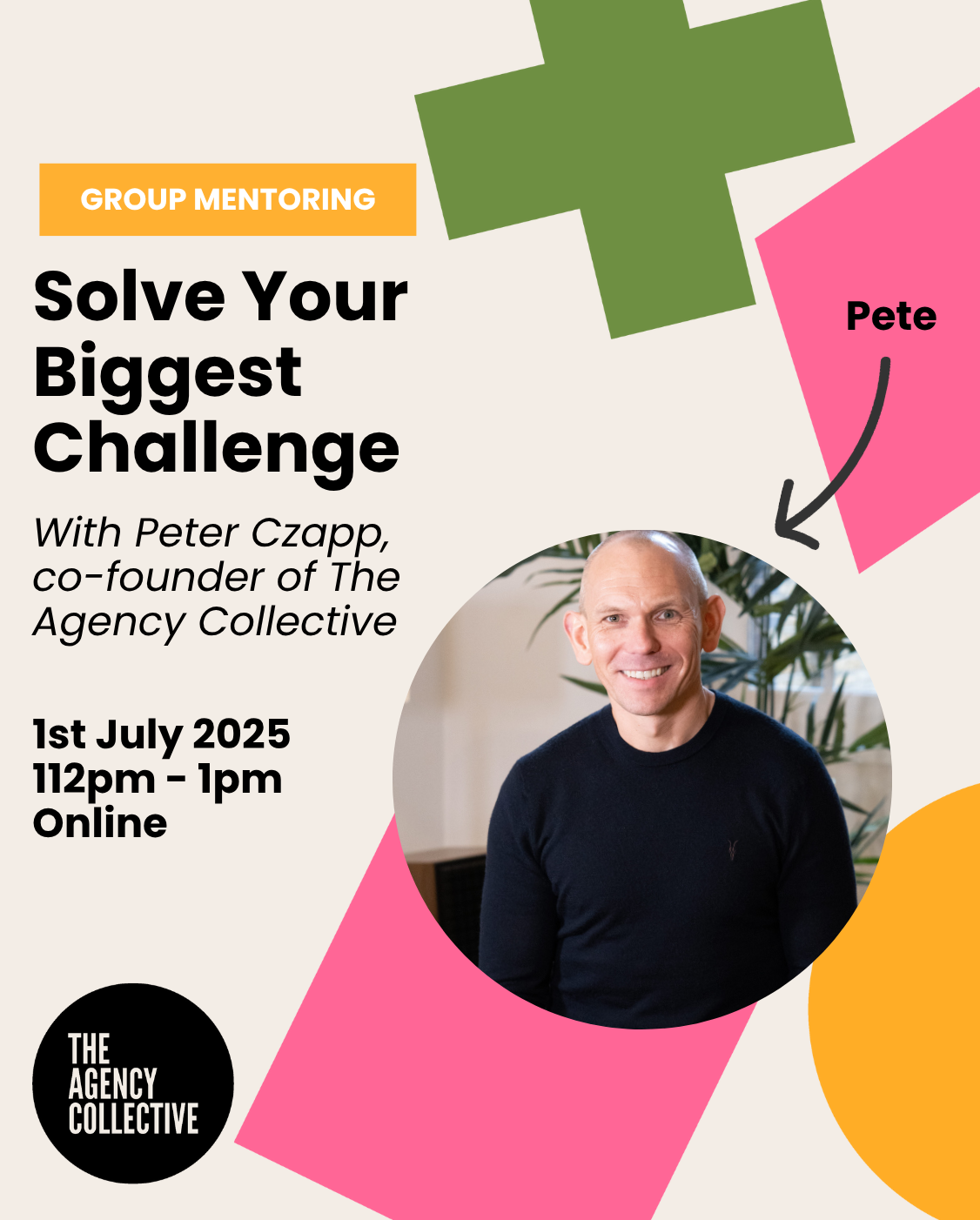 Join The Agency Collective’s co-founder, Peter Czapp, as he facilitates a group mentoring session to help you solve your biggest challenge.